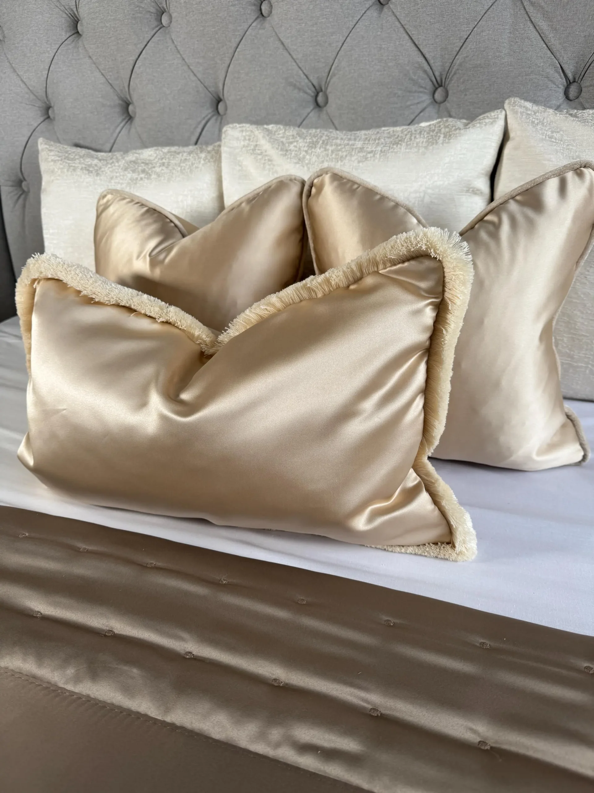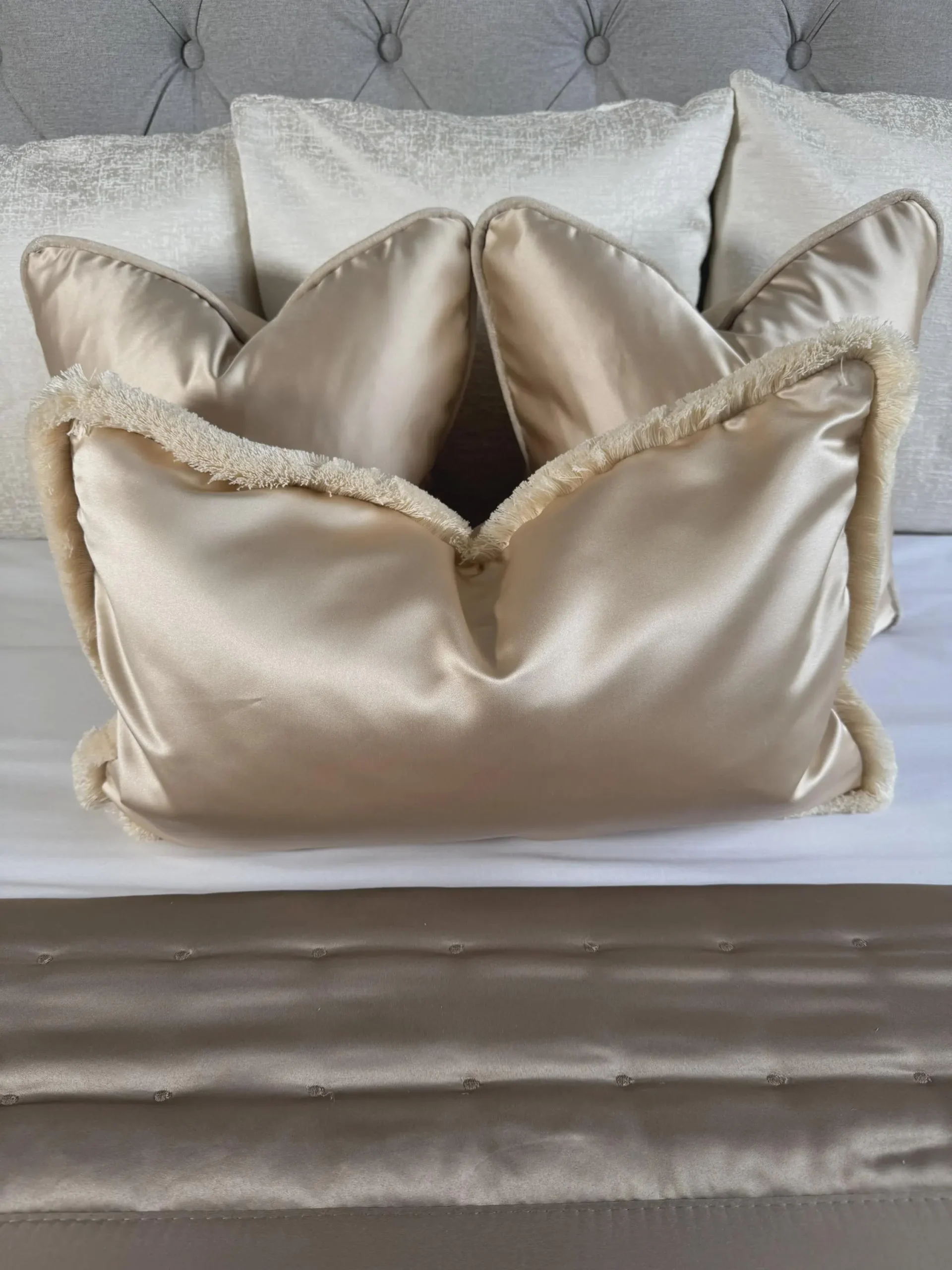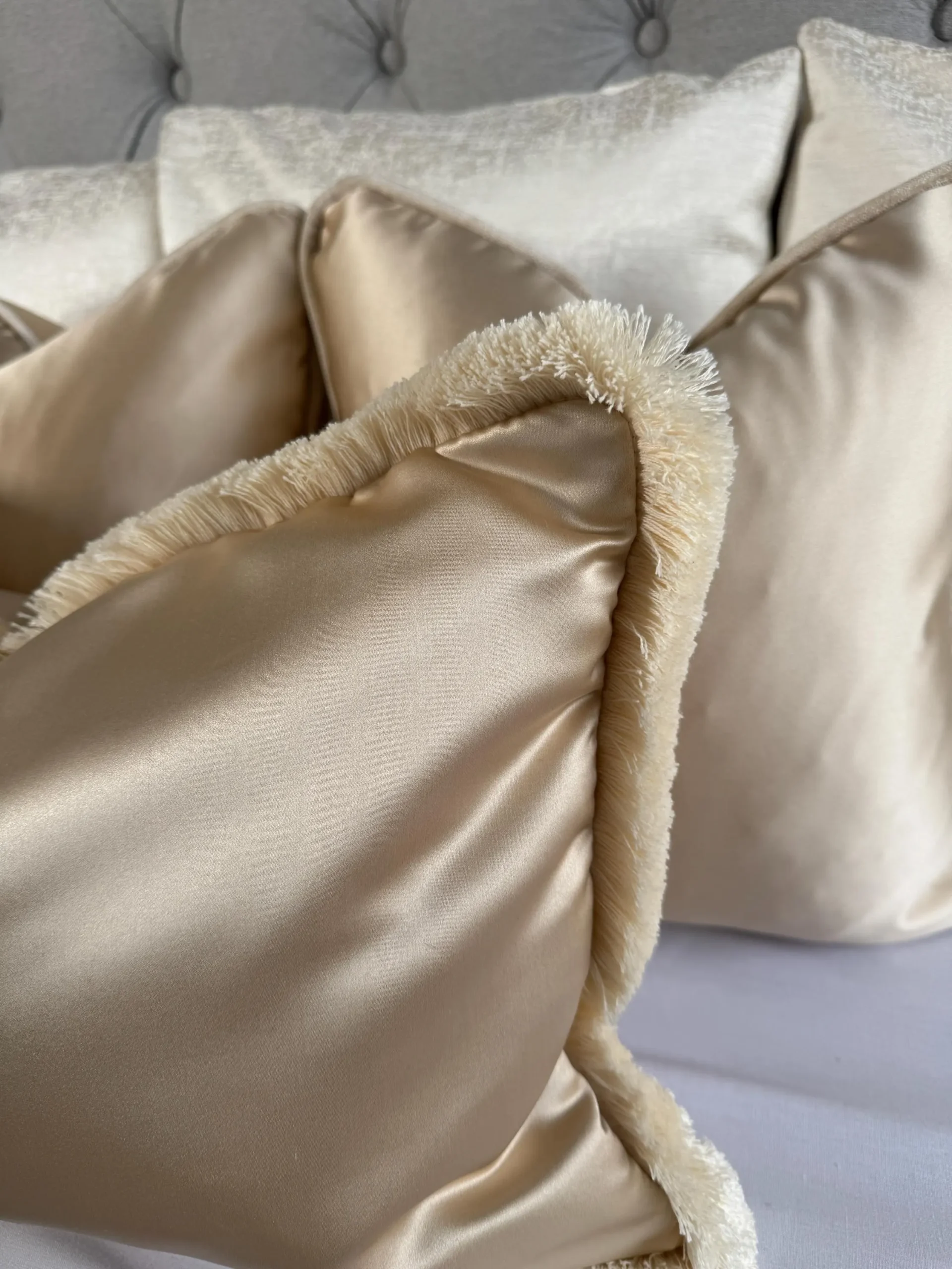 Introducing our fringed cushion cover Asina in the colour Champagne.