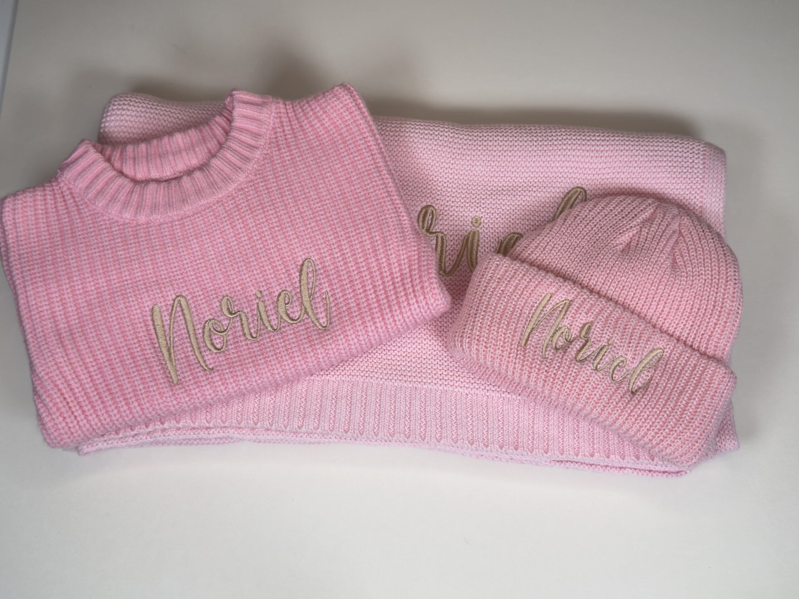 Create a beautiful and meaningful gift with our luxury personalised baby gift box. Each gift box includes a soft knitted baby blanket, hat and jumper that can be custom embroidered with the baby’s name, making it a special keepsake for years to come.