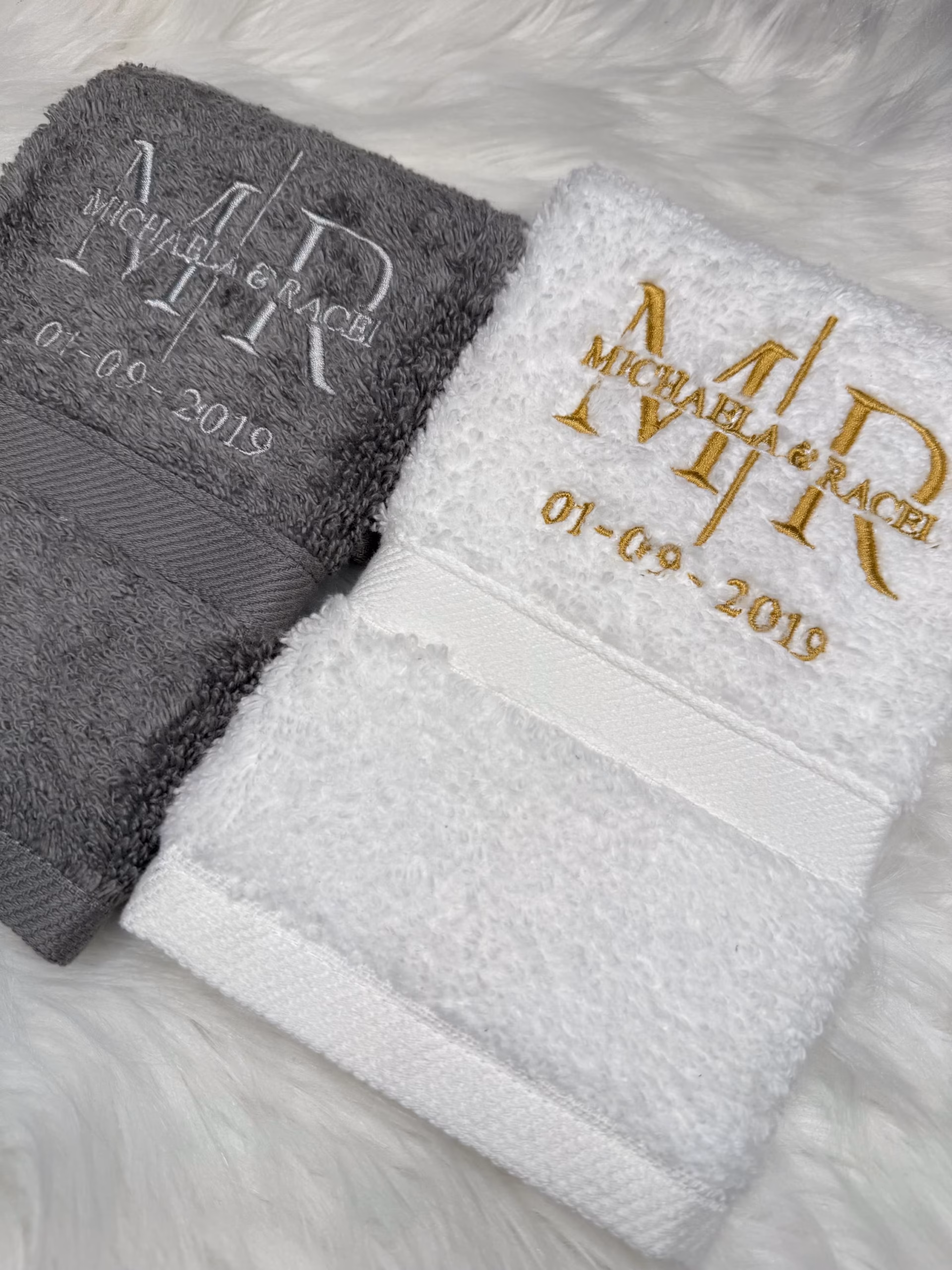 Create a lasting memory for your special day with our luxury personalised embroidered wedding favour towels.
