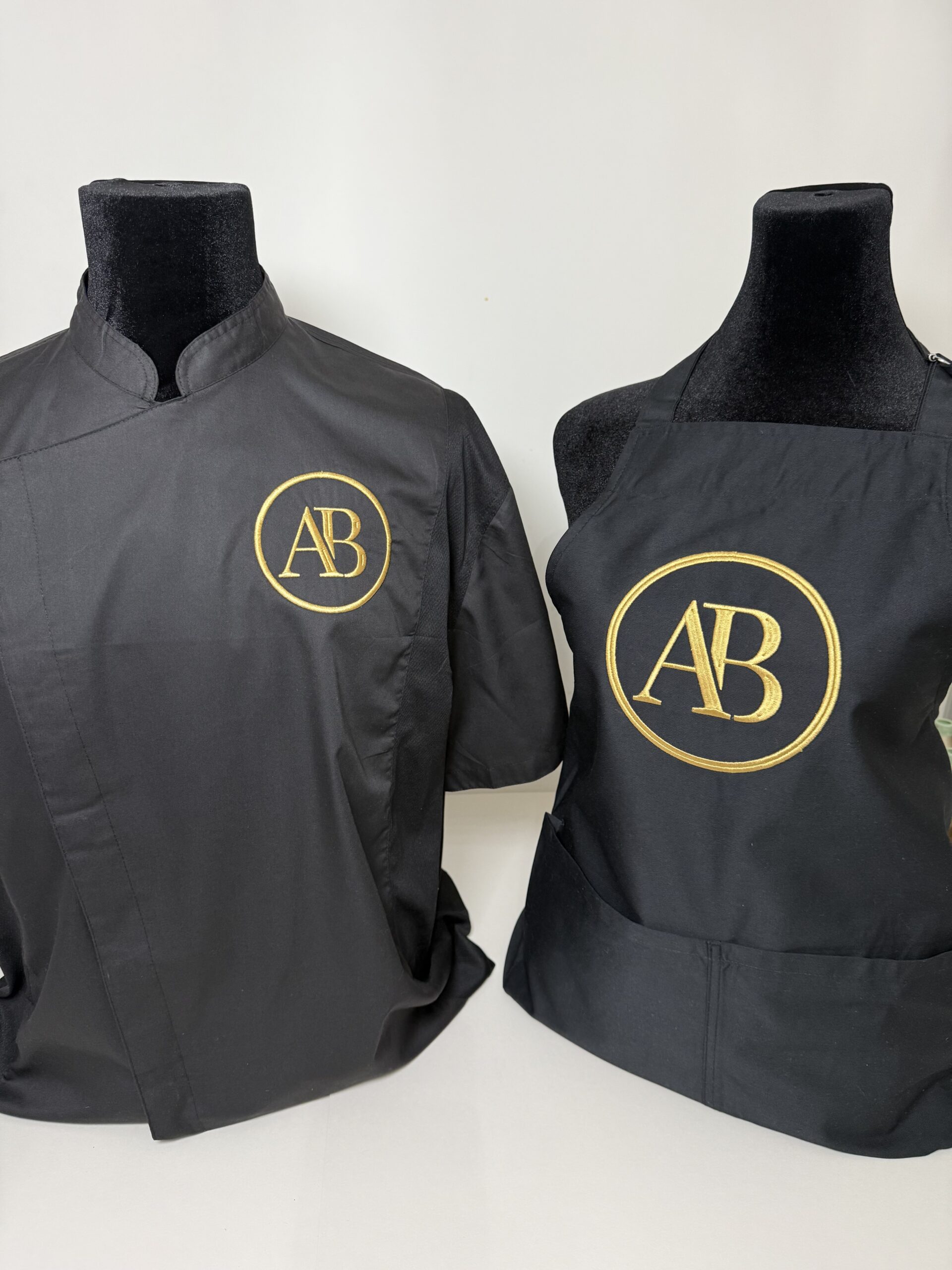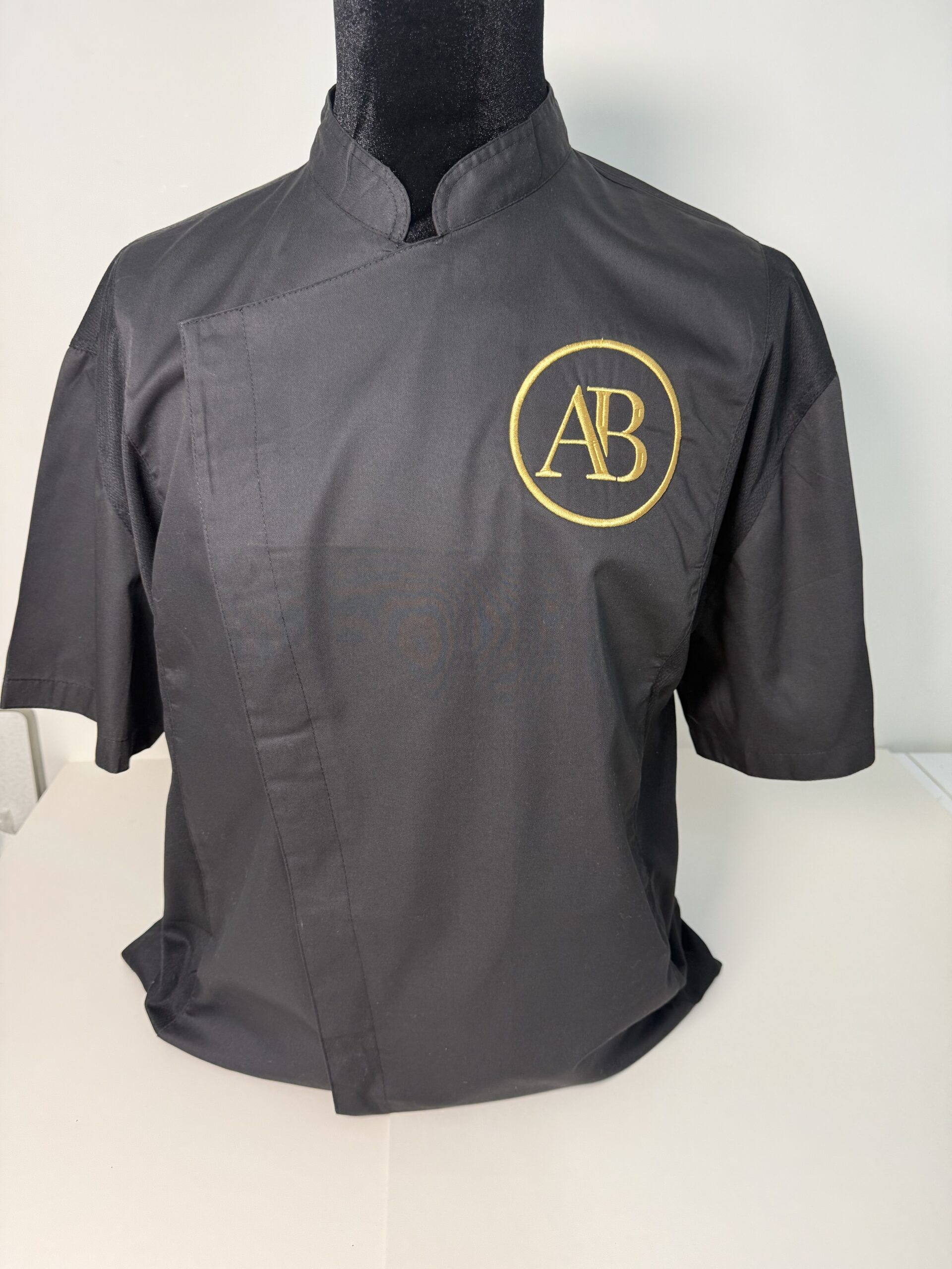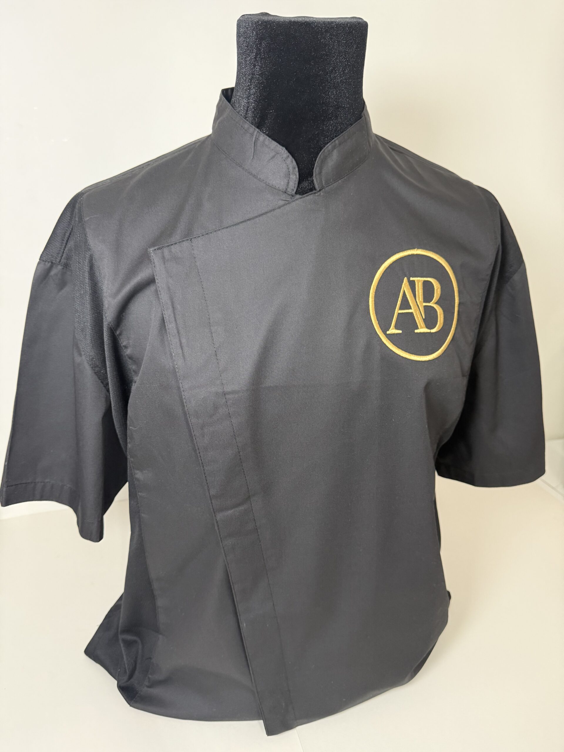 Crafted from high-quality breathable fabric, this unisex chef coat offers a modern tailored fit while allowing ease of movement throughout long shifts. The sleek black finish paired with elegant gold embroidery creates a luxury, professional appearance ideal for chefs, caterers, restaurants, bakeries, and hospitality teams.